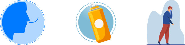 Inhalando o aspirando el vapor desde un envase o dispensador (como una botella de pegamento o un lapicero marcador); rociando aerosoles (como los limpiadores de polvo para computadoras) directamente en la nariz o en la boca; aspirando por la boca sobre un paño empapado en la sustancia; aspirando o inhalando el vapor de sustancias en el aire o; dentro de una bolsa de papel o plástico inhalando el contenido de globos inflados con óxido nitroso, también llamado "gas hilarante". ![]() Mecanismo de acción